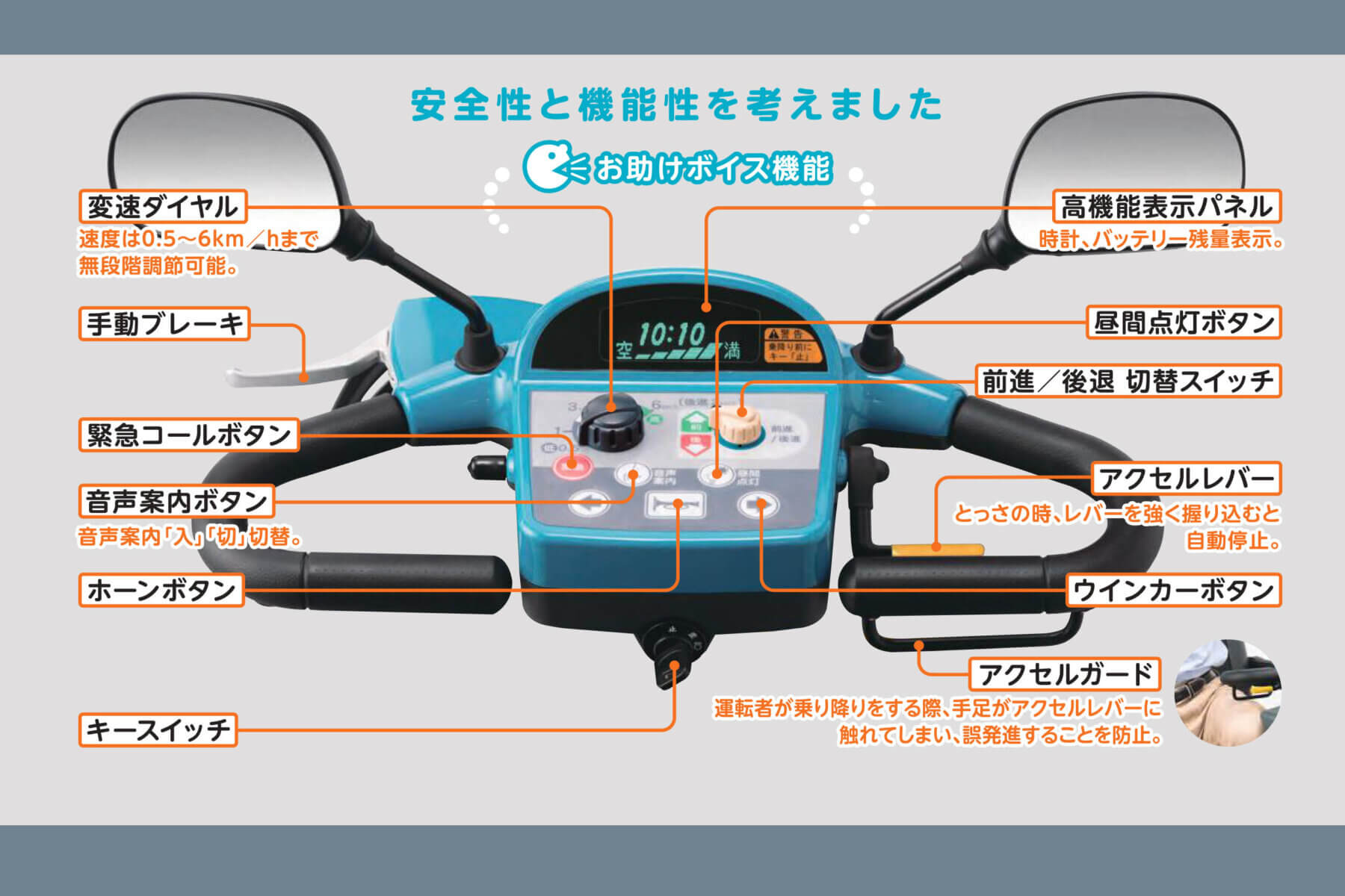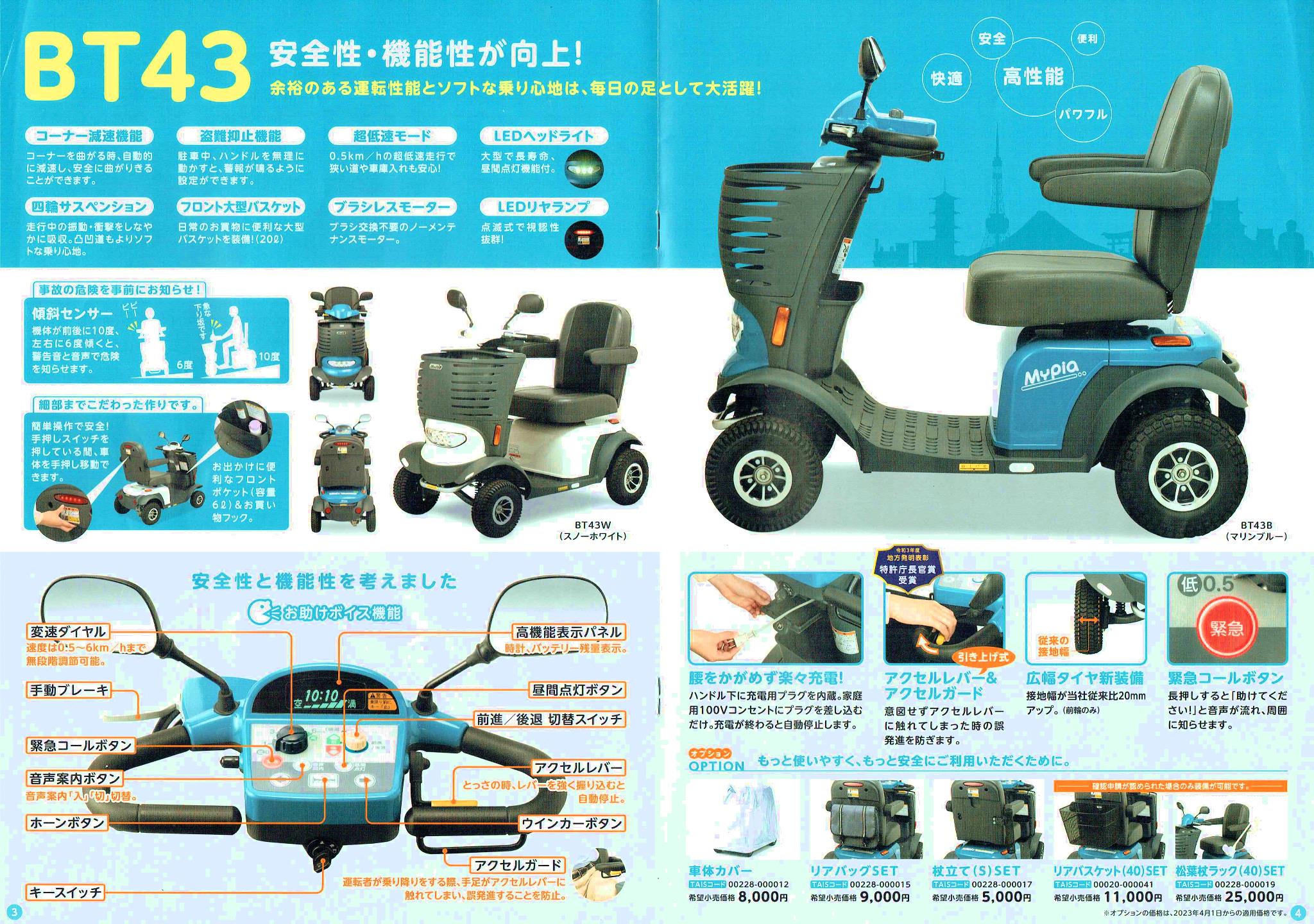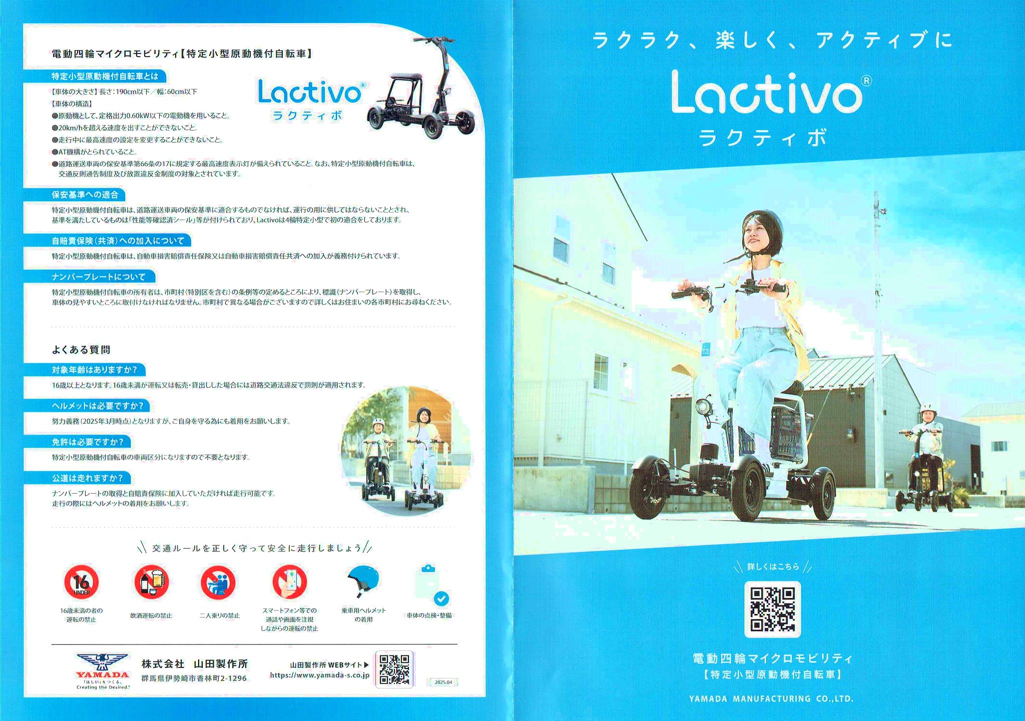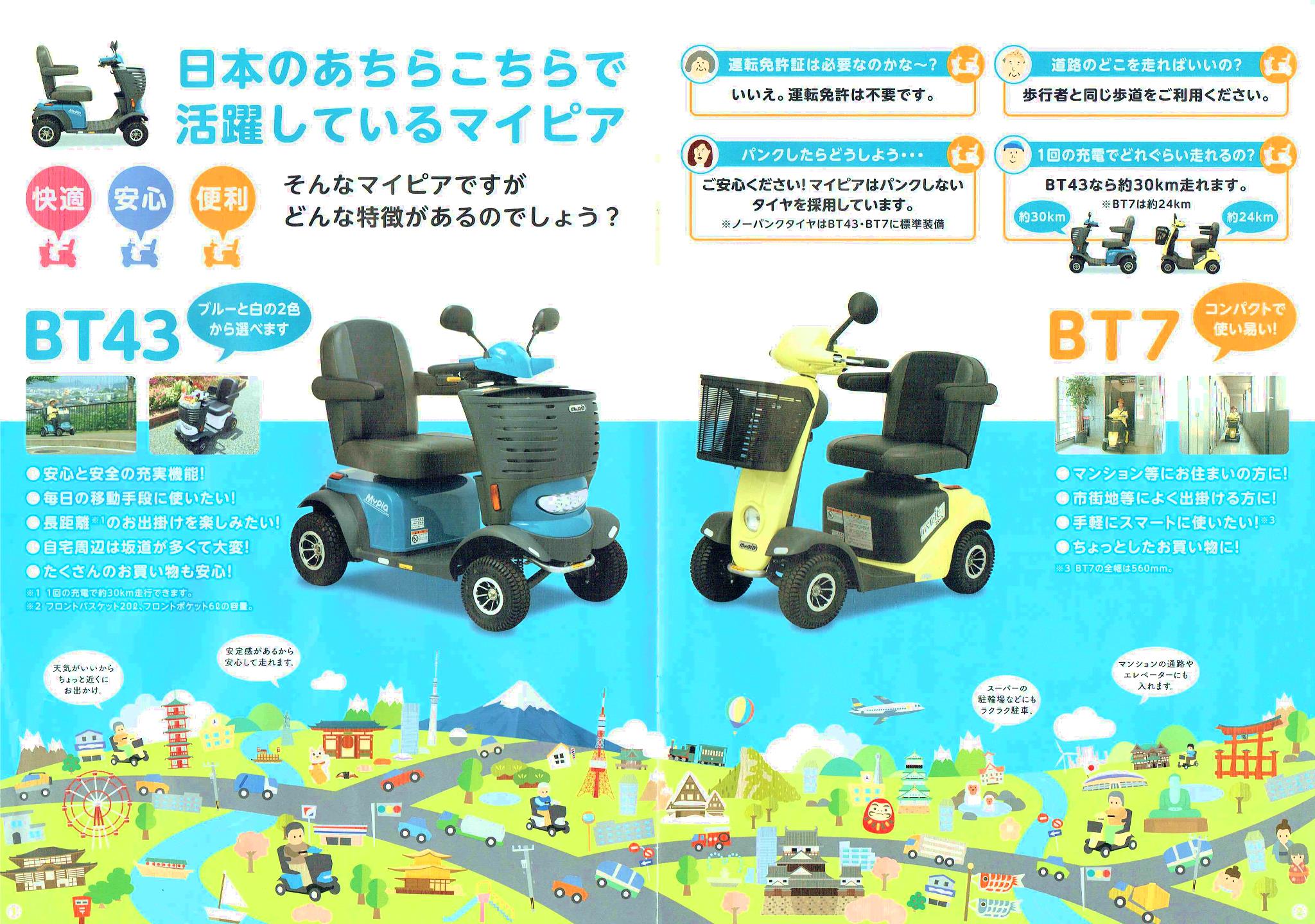 | ------------------------------------------------------------------------------------------- Lactivo ラクティボ/特定小型原動機付自転車 ・バックモード搭載・コンセント充電 電動アシスト自転車購入補助金(令和7年度環境都市推進補助金) (画像を押すと拡大します) ![]() Lactivoラクティボは、歩道用速度 6km/hモードと車道用12km/hモードの2段階速度制御が特徴です。 サスペンションと4輪タイヤにで安定性が高く、家庭用コンセントで充電。椅子下にバスケット収納も可能。 市の補助金対象です。 ![]() ![]() ![]() ![]() ----------------------------------------------------------------------------------------- アフターも充実しており、安心迅速にサポートさせていただきます。ぜひご相談ください。 電動車いす マイピア (画像を押すと拡大します) ![]() アテックス「マイピア」は、家庭用100Vで腰をかがめずそのまま充電できる自動充電器内蔵で、最長約30kmの連続走行と前進0.5〜6.0km/hの無段階速度調整を備えた実用的な電動車いすです。 ノーパンクタイヤ・傾斜センサー・緊急コール機能など安全性・利便性を高める装備を標準搭載し、安定した乗り心地と日常使いに適した設計になっています。 ![]() ![]() ![]() ![]() ![]()