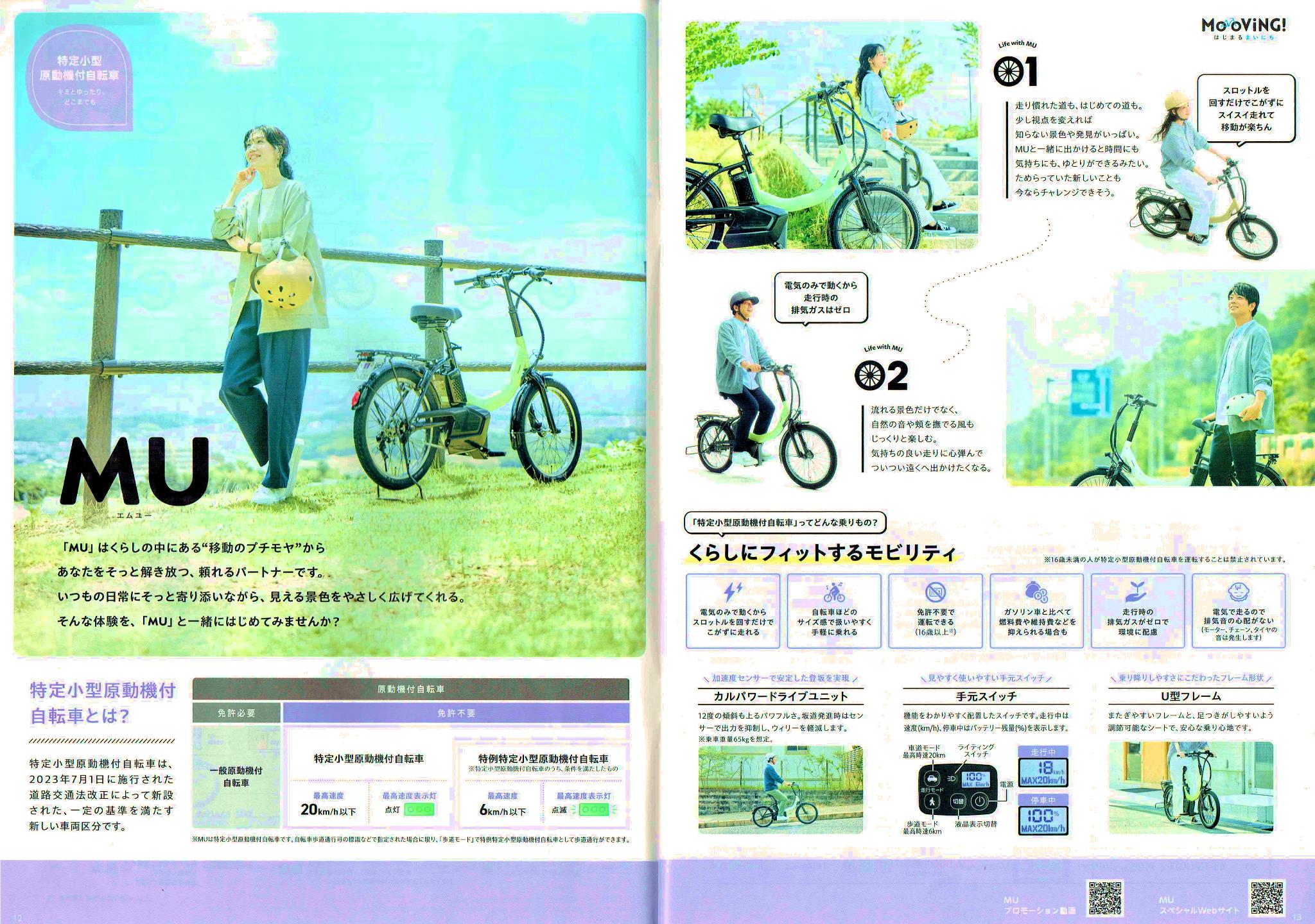 | パナソニック MU 特定小型原付自転車 スロットルを回すだけで走る特定小型原動機付自転車 電動アシスト自転車購入補助金(令和7年度環境都市推進補助金) (画像を押すと拡大します) ![]() パナソニック「MU」は、ペダルなしのスロットル駆動で免許不要(16歳から)で乗れる特定小型原付です。最大速度は車道モードで約20km/h、歩道モードで約6km/hで切替可能となっています。U字型フレームと20インチ幅広タイヤで安定した取り回しを実現し、12度の坂を登れるパワーと坂道発進時の出力抑制センサーで安定性を高めています。 ![]() 市の補助金対象です。コンセント充電 ![]() パナソニック MU 公式ページ |